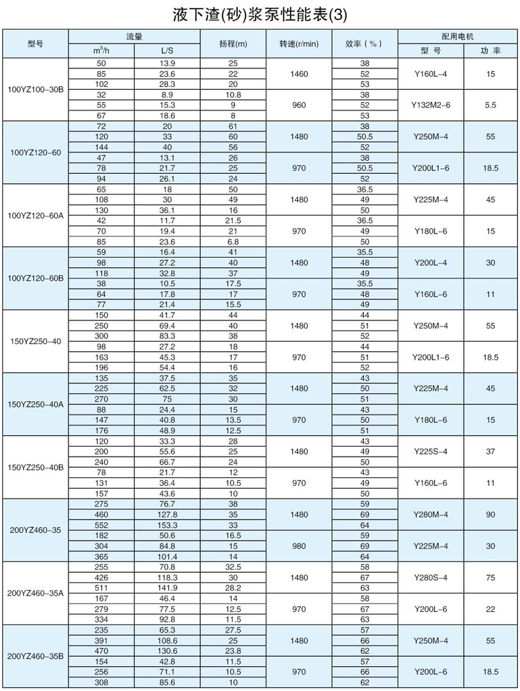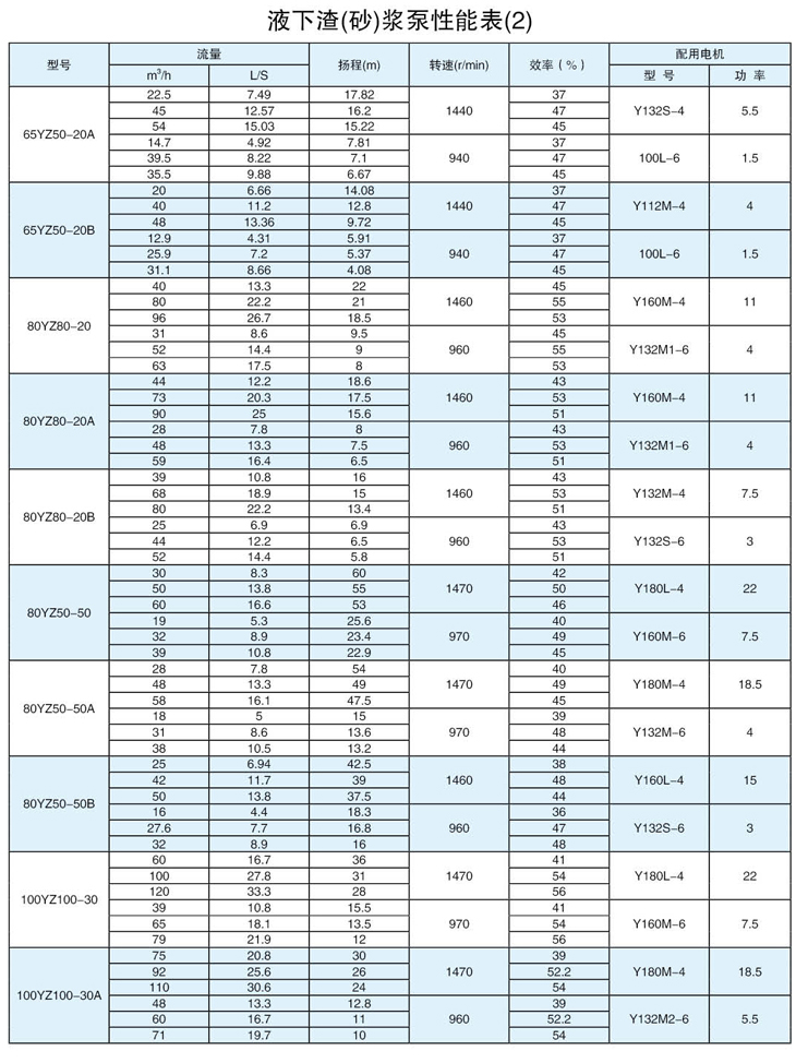 過流部件:該系列泵為立式渣漿泵,浸入液下工作。該型泵泵體為耐磨金屬,葉輪選用耐磨金屬或橡膠、聚胺脂等材料制造。適用于輸送磨蝕性,腐蝕性渣漿。